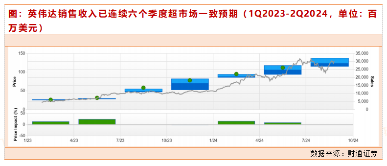 本周8月29日盘后,英伟达要公布业绩,而从市场担心来看,在经历了GB200延期,公司业绩能否再超预期,也具有不确定性,从近期公告的AI核心厂商来看,还是面临不确定性,部分资金在英伟达公布业绩离场,也是市场波动的根源,需要靴子落地。根据Factset数据,截至2024年8月24日,英伟达2Q2024(2024.5-2024.7)营业收入一致预期为287.23亿美元,同比增长112.7%,超过了公司对市场2Q2024的业绩指引(274.4亿美元-285.6亿美元)上限;其中数据中心业务预计收入252.4亿美元,同比增长144.5%,销售占比升至87.9%。