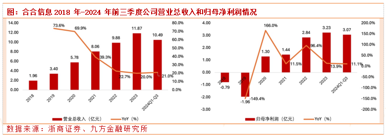 公司营收及盈利保持快速增长态势,经营规模持续成长。2023 年公司实现营业总收入11.87 亿元,同比增长 20.0%,2018-2023 年 CAGR 达到 43.3%。2024 年前三季度,公司实现营业总收入 10.49 亿元,同比增长 21.0%。净利润方面,公司自2020 年实现扭亏为盈以来利润快速增长,2023年实现归母净利润3.23亿元,同比增长13.9%,2020-2023年CAGR 达到 35.6%。