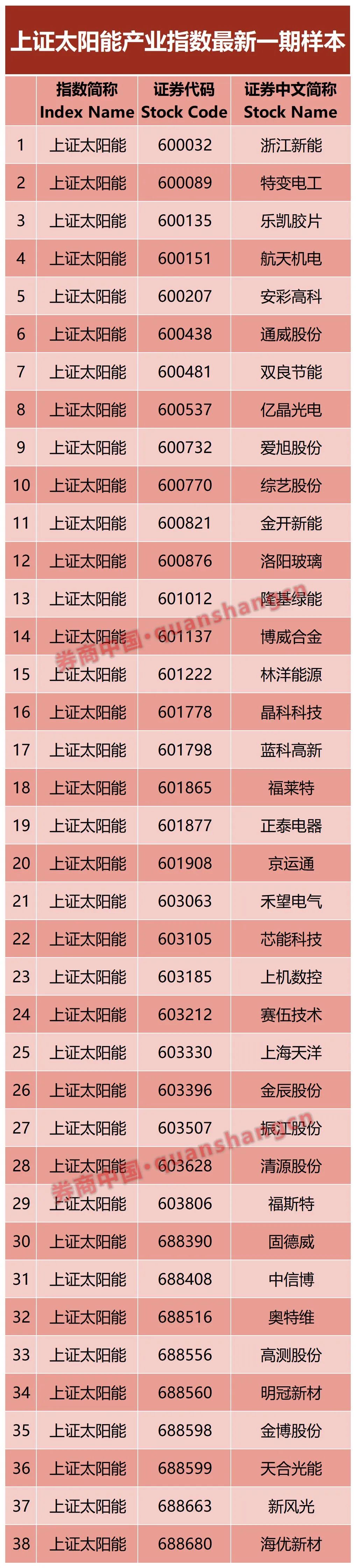 首批入选的标的股与上证光伏产业指数有较多重合,总数量为38只。