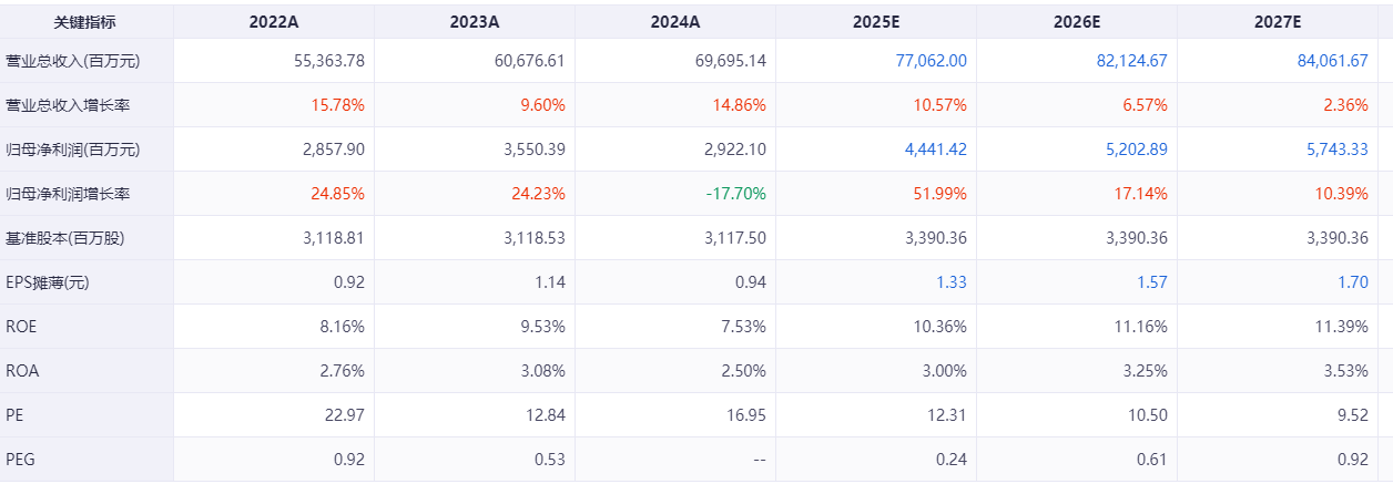 2019年公司营收317.78亿元,到2023年营收达595.67亿元,复合年均增长率达17.01%。2024年实现营业总收入696.95亿元,同比增长14.86%,2025年一季度,公司实现营业总收入165.48亿元,同比增长9.93%。