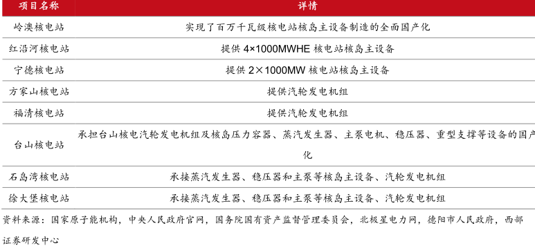 2018年投运的台山核电站中有着由公司提供的世界最大单机容量核能发电机。2023年,公司获得铅铋堆、低温堆等新堆型样机研制项目。目前已累计交付超200台套核电主设备,其中国产首台套超20台。