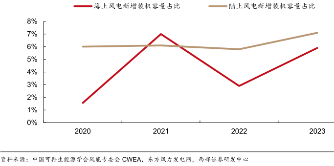 公司陆上风电和海上风电新增装机容量在总装机中占比呈上升态势