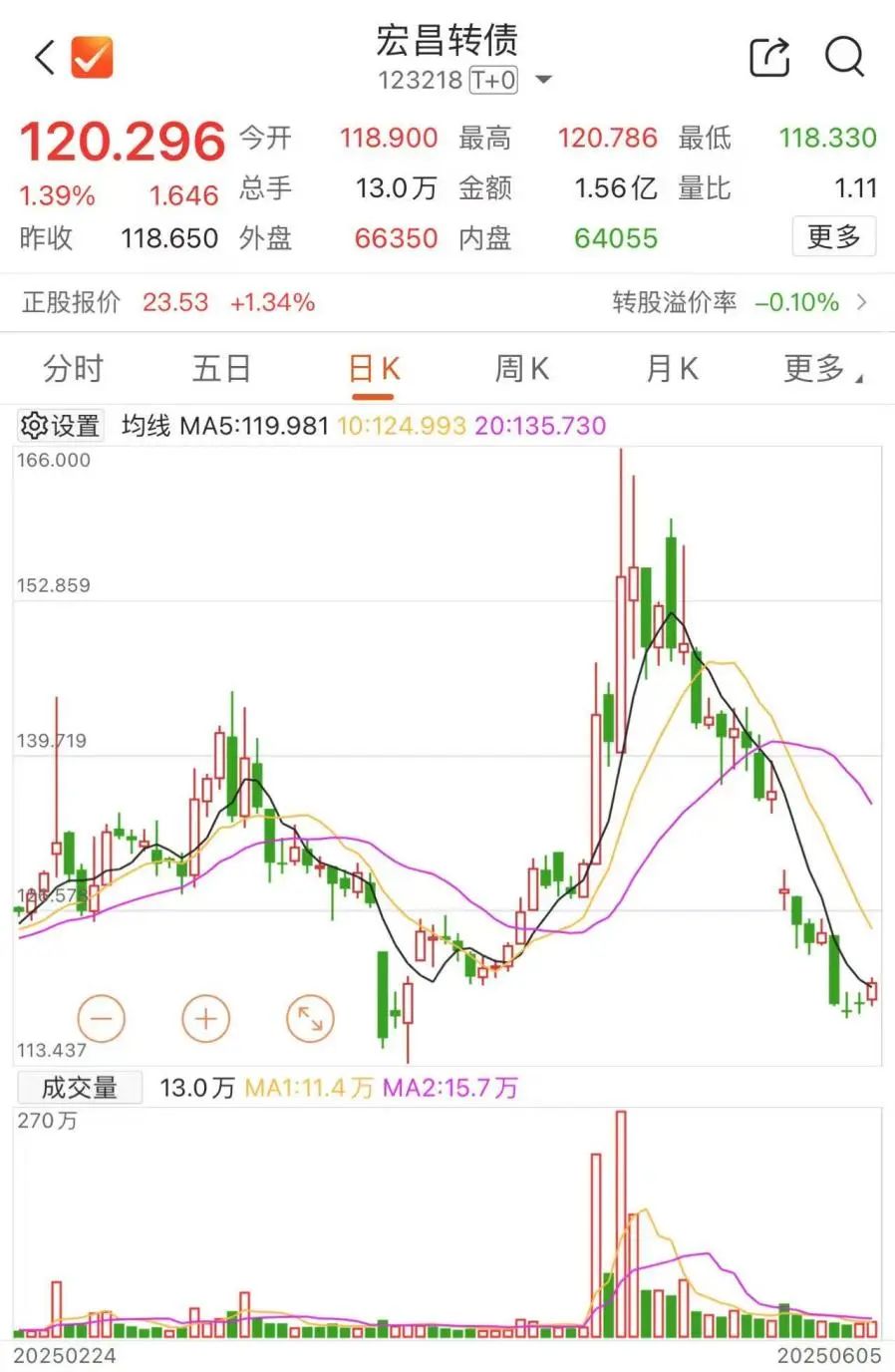 截至6月5日收盘,宏昌转债价格为120.296元/张,对照强赎价格,不操作或亏损超16%;截至目前,宏昌转债余额达1.73亿元,占债券发行总额的比例超过45%。
