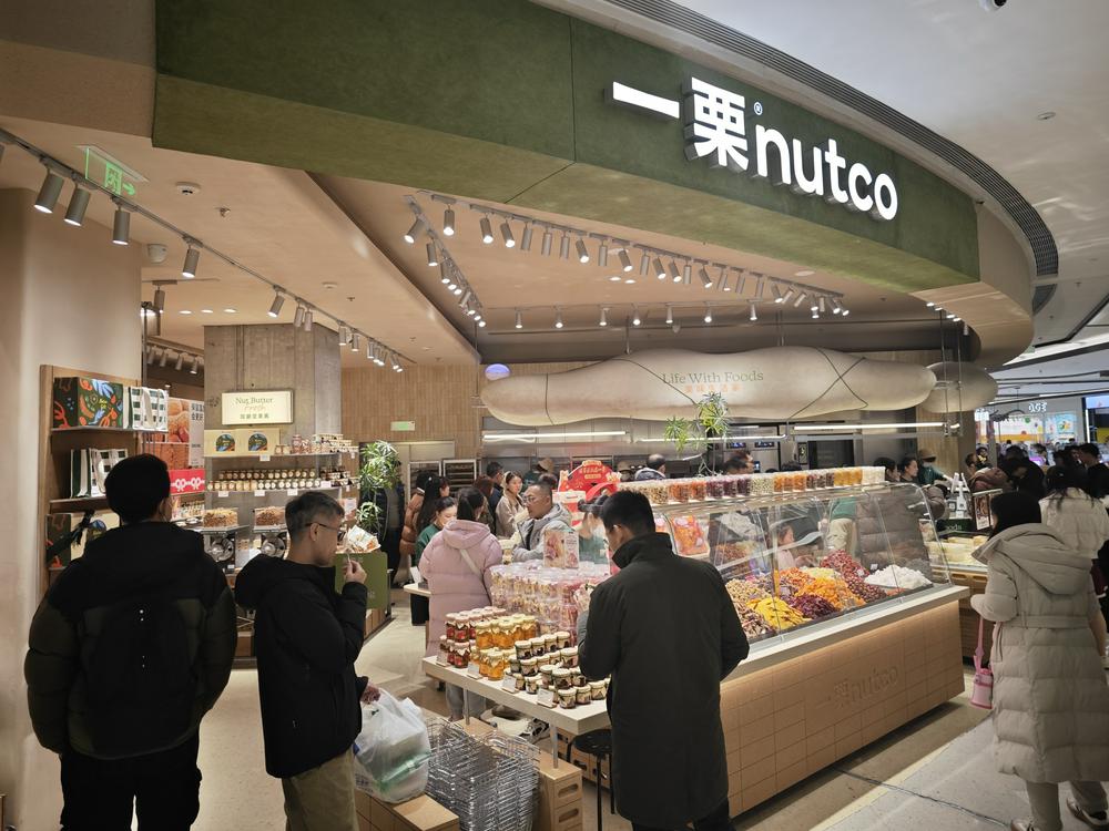 在龙湖天街地下一层,天津首家“一栗nutco·美味生活家”引得众多消费者排队。除了果干、果脯、果酱,还有牛肉干、鱿鱼丝和现烤的面包、招牌的栗子冰淇淋等。