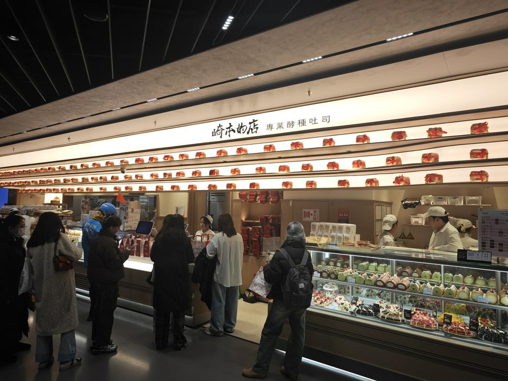 财联社记者在西单一家商场内看到,一家名为崎本的店的面包店吸引了众多消费者。其产品“元气生吐司”和“丝醇咖啡奶酥”备受追捧。一位消费者告诉记者,这家崎本的店是北京首店,主打天然酵种吐司的烘焙产品。