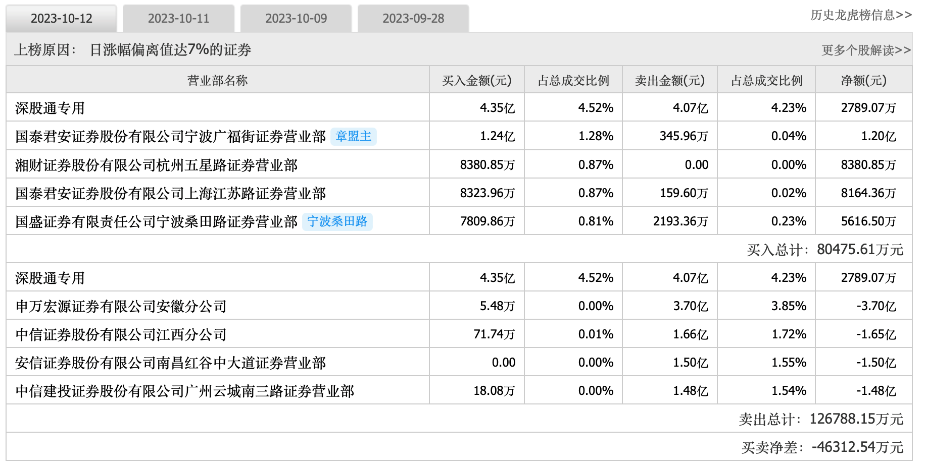 欧菲光盘后公布的一日榜数据显示,龙虎榜资金净卖出4.63亿元,其中,北上资金深股通专用席位位列买一和卖一,分别买入4.35亿元和卖出4.07亿元。知名游资章盟主位列买二席位,买入1.24亿元。