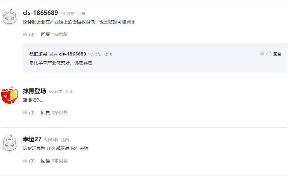 消息一出,众多网友纷纷热议。有人表示,“这种制造业在产业链上的话语权很低,也是随时可被剔除”,还有人表示“总比苹果产业链要好,说走就走”...