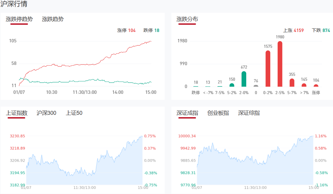 A股三大指数今日集体反弹,截至收盘,沪指涨0.71%,深成指涨1.14%,创业板指涨0.70%,北证50指数涨2.07%。全市场成交额10891亿元,较上日放量179亿元。全市场超4000只个股上涨。