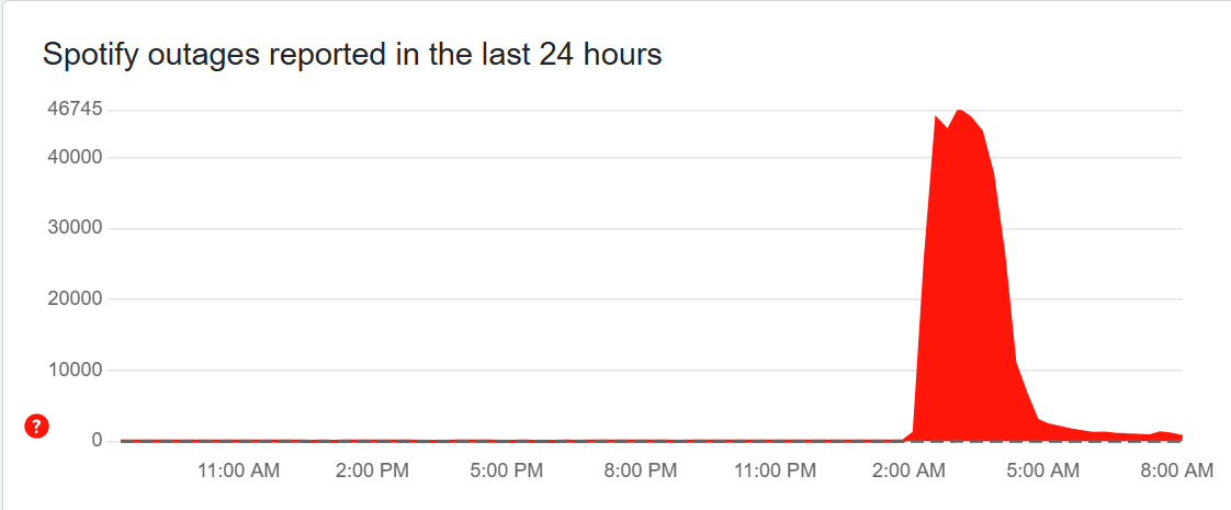 此外,在受影响的服务平台中,Spotify用户报告的故障次数最多。截至美东时间下午3点,有4.6万名用户报告了问题,Spotify的一位管理员在社区更新中表示,用户在登录和音乐播放等方面遇到了问题。