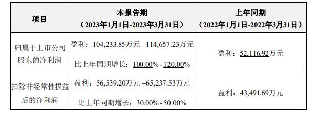 4月9日,亿纬锂能公告,预计一季度盈利10.42亿元~11.47亿元,同比增长100%~120%。