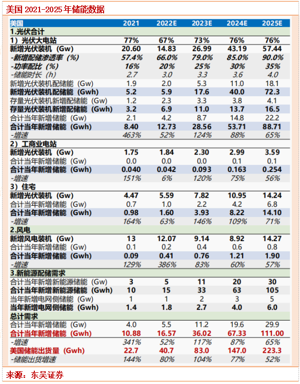 综上,预计2023年美国储能市场总需求为36GWh,对应出货量为83GWh,装机/出货同增117%/104%,到2025年装机/出货需求为111GWh/223GWh,2022-2025年装机/出货CAGR分别为88.5%/76.4%。
