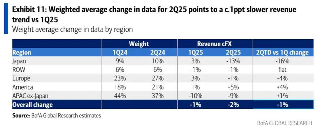 美银表示,2025年第二季度奢侈品需求疲软,但或好于预期。该行指出,2025年第二季度的加权平均数据变化显示收入趋势较第一季度放缓1个百分点(即同比下降2%)。