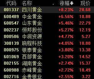 黄金股午后冲高!四川黄金大涨8% 机构称金价有望进一步走高