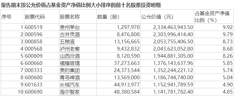 易方达蓝筹精选前十大重仓股,来源:基金公告