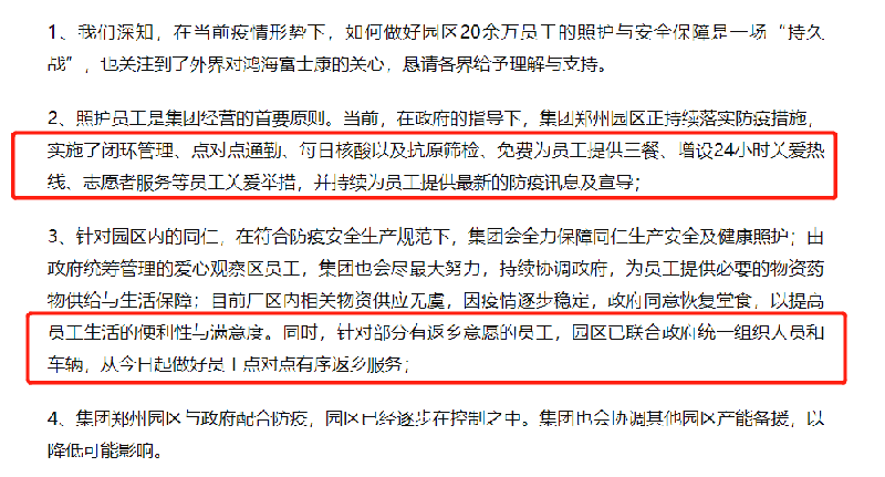 富士康官方2日回应记者称,郑州园区与政府配合防疫,目前状况已在逐步控制之中,集团也会协调其他厂区产能备援,以降低可能的影响。针对单一客户/产品具体产能状况,不发表评论。