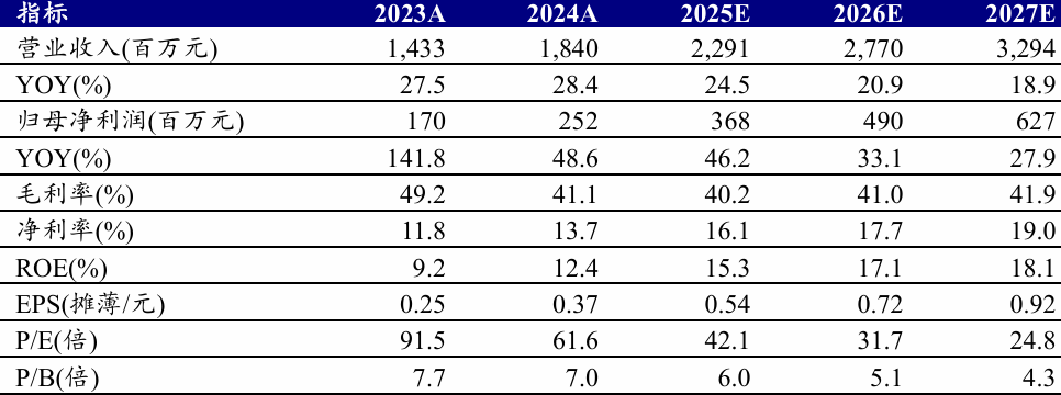 根据Wind一致预期,公司2025-2027年归母净利润有望实现3.25/4.05/6.27 亿元,同比+28.8%/24.7%/55%。