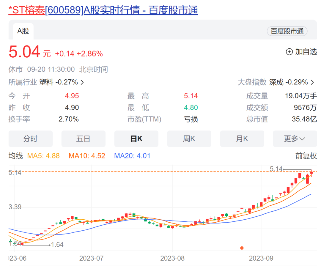 东数西算在A股市场持续演绎着点石成金的“魔法”。前有竞业达一度短时间内拉10多个涨停,股价由16元附近暴涨至最高超70元,现又有*ST榕泰,自6月以来多次连续涨停,今日股价一度再次冲击涨停,创3年多来新高,期间累计大涨213%。
