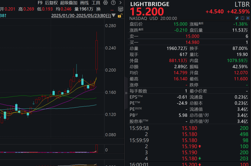 在特朗普签署加快核能发展的相关行政命令后,核能概念股集体飙升,Lightbridge盘中一度大涨近50%。