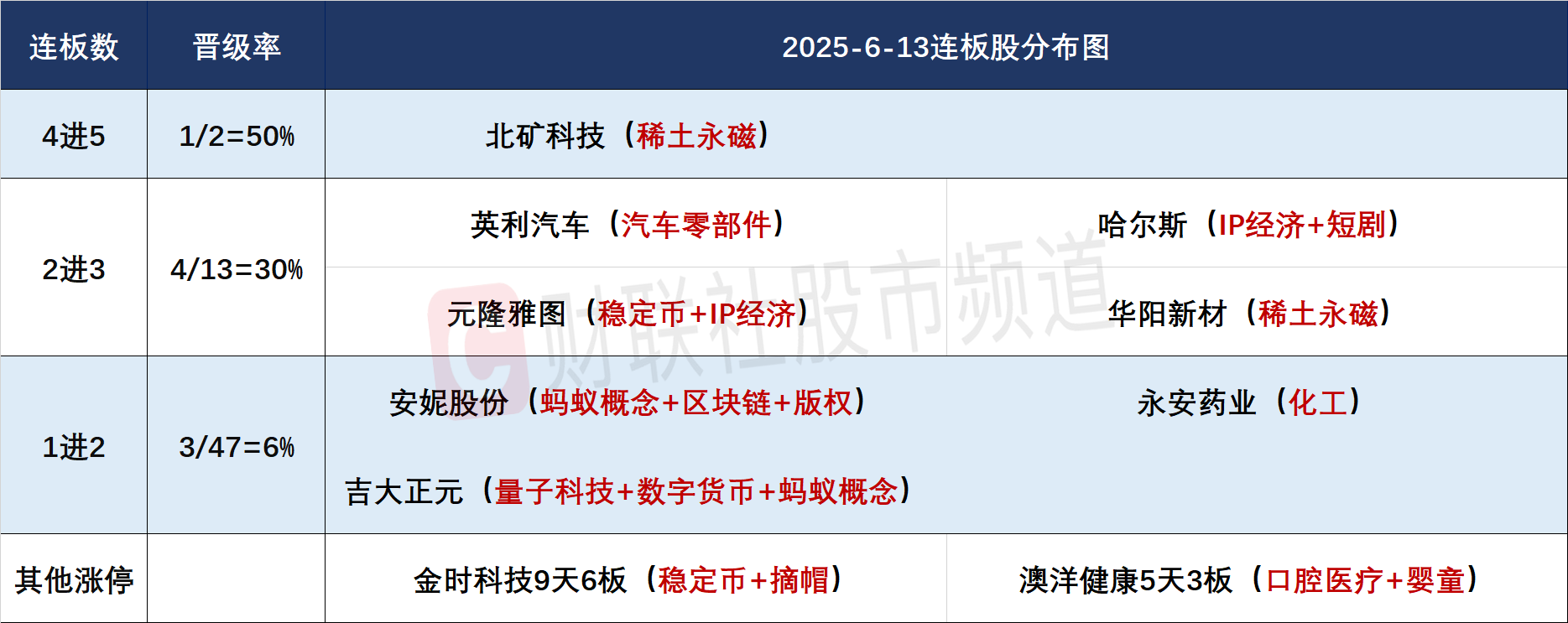 6月13日连板分析:连板数量创一月最低 地缘冲突相关板块全天大涨