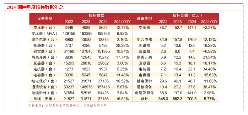 国网总部2024年输变电设备招标总结