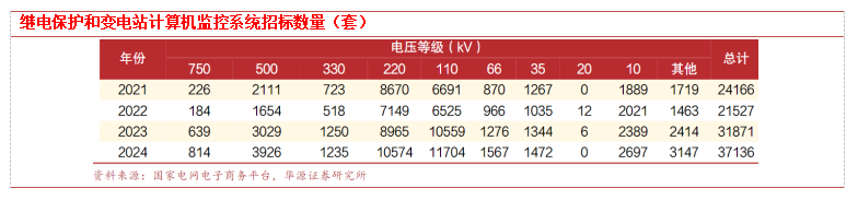 继保招标总数增加但单价下降。2024年中标金额40.7亿元下滑11.7%,但招标总数相比2023年增加约16.5%,主要原因在于继保价格从2023年4批次后一路下跌,2024年1批次中标单价仅7.4万元/套创下近3年最低水平,但随后开始回升到正常水平。