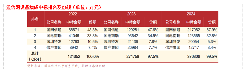2024年中标金额37.6亿元,同比增长38.5%,招标数量15.74万套,同比增长5.7%,通信设备的平均相比2023年有较为明显提升。