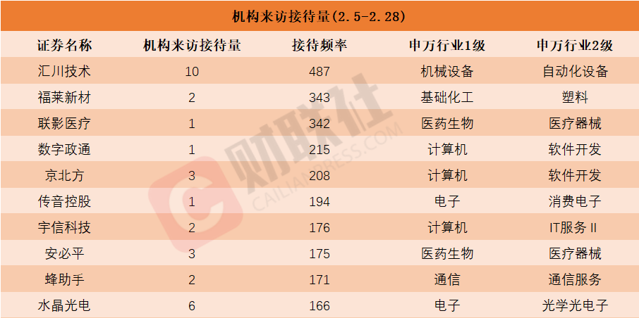 华为概念股赫然在列!2月接待机构调研次数居前热门股名单一览