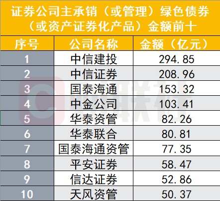 四家券商承销绿色债券金额破百亿