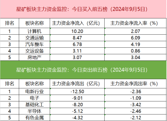 从主力板块资金监控数据来看,计算机板块主力资金净流入居首。
