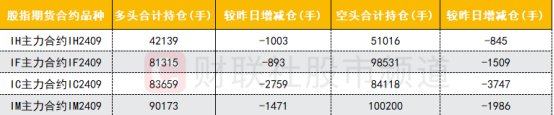 ①IC期指主力合约空头减仓超3000手,减仓数量明显大于多头。