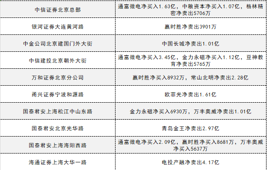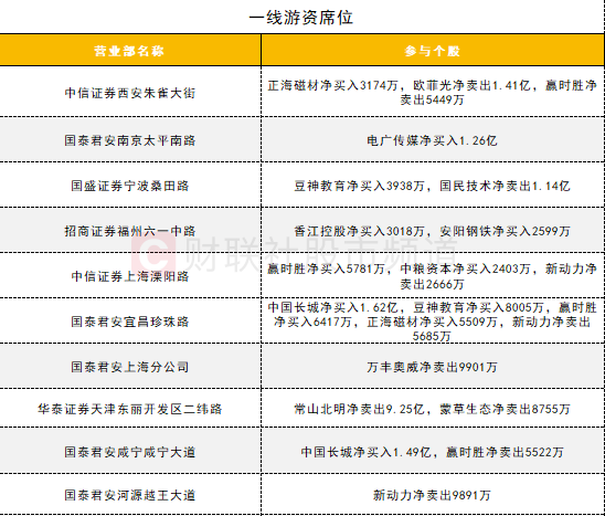 【数据看盘】电投产融遭机构甩卖超6亿 实力游资卖出常山北明豪赚上亿元