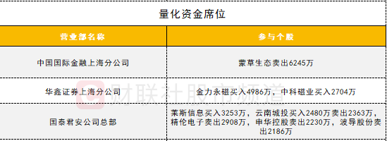 量化资金活跃度一般,金力永磁获一家量化席位买入近5000万。