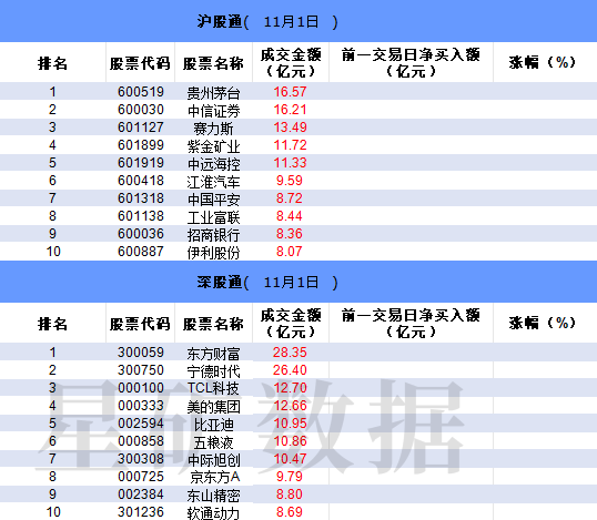 从深股通前十大成交个股来看,东方财富位居首位;宁德时代和TCL科技分居二、三位。