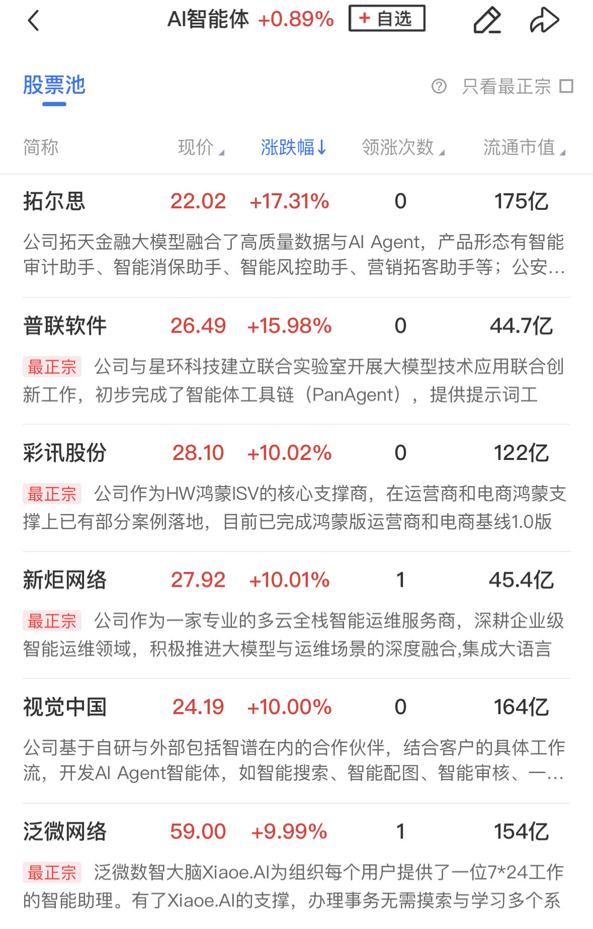 AI智能体概念反复活跃,新炬网络、视觉中国、垒知集团、泛微网络涨停,海天瑞声、世纪天鸿、三六零等个股涨幅居前。
