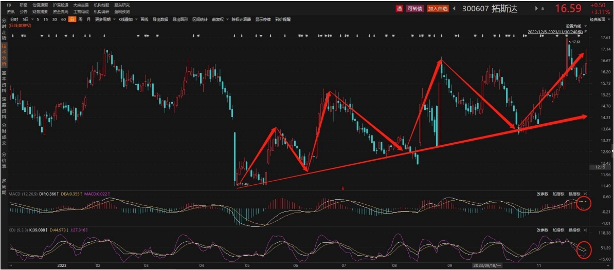 技术面上,K线延上升通道震荡上行,MACD金叉,KDJ即将金叉!