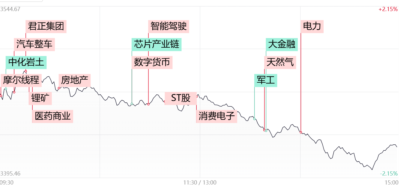 市场全天冲高回落,沪指领跌。沪深两市全天成交额2.55万亿,较上个交易日放量430亿。盘面上,医药股集体走强,医药商业方向领涨,药易购、塞力医疗、中国医药等涨停。ST板块逆势活跃,ST明诚、ST易购、ST英飞拓、ST三圣等20余股涨停。零售股冲高回落,宁波中百、汇嘉时代、供销大集涨停。汽车整车股局部活跃,东风股份、江铃汽车、上汽集团涨停。下跌方面,高位股继续退潮,中化岩土、荣盛发展等多股跌停。军工股集体调整,中航沈飞等多股跌超5%。整体上个股跌多涨少,全市场超3700只个股下跌。截至收盘,沪指跌1.39%,深成指跌0.65%,创业板指跌0.07%。
