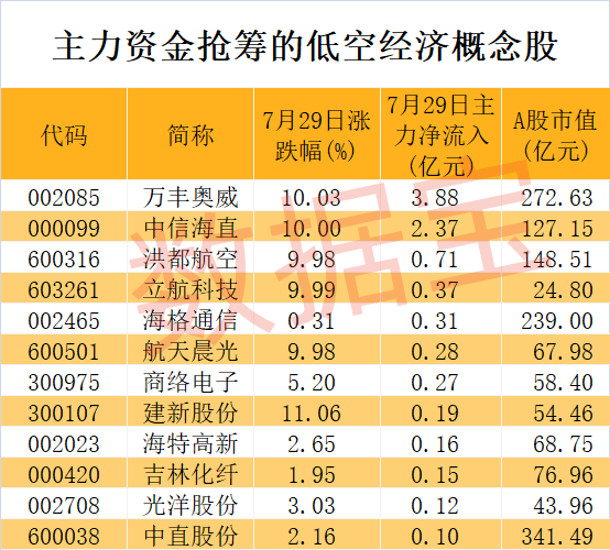盘后数据显示,今日低空经济合计获得主力净流入6.49亿元,其中万丰奥威、中信海直、洪都航空、立航科技、海格通信主力净流入额靠前。万丰奥威主力净流入额最高,达到3.88亿元。公司近期在接受机构调研时表示,旗下的万丰钻石拥有18款机型的全部产权,研发能力全球领先,目前大力开发固定翼纯电动飞机,并在eVTOL领域有清晰的商业化布局。