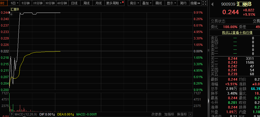汇丽B拟回购资金总额300万元—600万元,回购价格上限为0.51美元/股,回购股份数量为81.78万—163.56万股,约占公司总股本的比例为0.45%—0.9%。值得关注的是,公司5月21日公布可能被终止上市的第一次风险提示公告,公司股票5月20日收盘总市值为人民币2.9亿元,首次低于人民币3亿元,如果连续20个交易日的每日股票收盘总市值均低于人民币3亿元,则公司股票可能被上交所终止上市交易。该股早盘开盘下跌9.46%后股价大幅拉升至涨停。