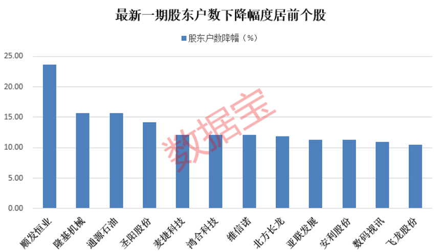 股东户数降幅最多的是顺发恒业,截至11月10日最新股东户数为4.84万户,较10月31日下降23.66%;筹码集中以来该股累计下跌9.28%。