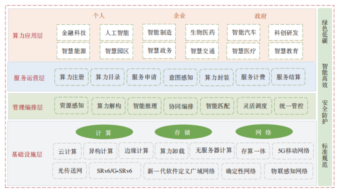 匹配不同算法对算力的不同要求。算力主要分为通用算力、智算算力和超算算力三大类型。不同算法对算力硬件有不同要求,算力网络建设完成后,算法使用者可自动调用匹配于算法的算力。
