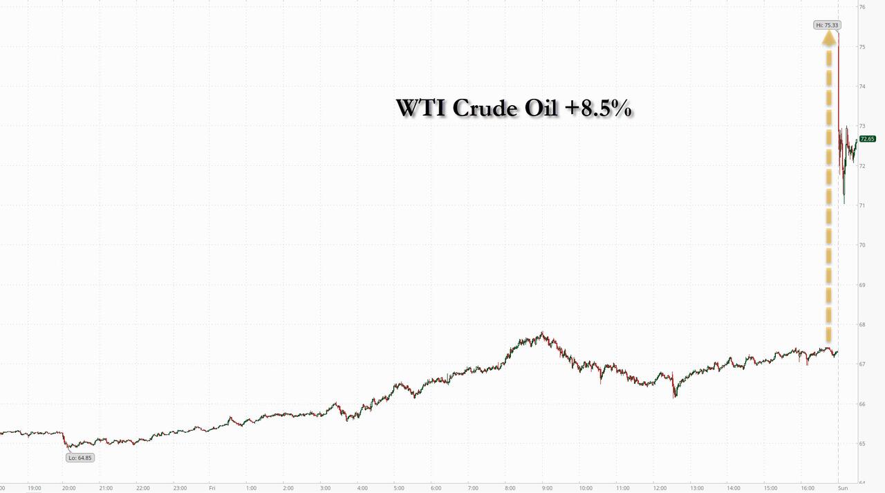 行情数据显示,在美国和以色列袭击伊朗后,国际油价周一早间跳涨,布伦特原油期货开盘飙升13%至每桶82美元,WTI原油期货涨超10%报75美元/桶。显然,在日内交易恢复时,随着投资者评估全球能源供应风险——特别是通过霍尔木兹海峡的风险(该海峡承载了全球约五分之一的石油和液化天然气),油价出现了应激式的上涨行情。