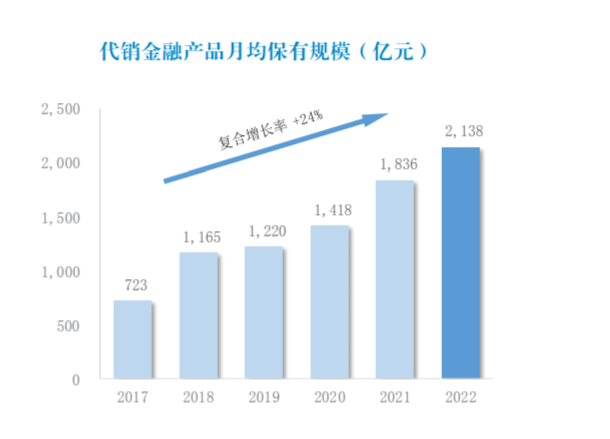 截至2022年末,国泰君安旗下君弘APP用户3901万户,较上年末增长2.9%;平均月活723万户,同比增长20.1%。个人资金账户数1563万户,较上年末增长7.1%。报告期内,金融产品销售额7357亿元,同比增长7.6%;金融产品月均保有量2138亿元,同比增长16.4%。