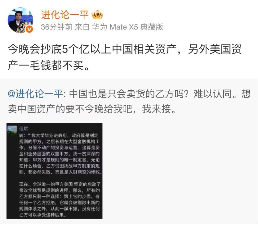 4月5日,进化论资产CEO、首席投资官王一平就表示,抄底5亿元以上的中国相关资产。到了4月8日,他在社交平台记录:已满仓。