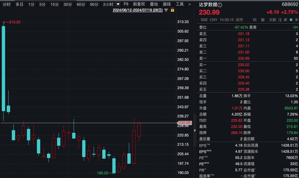 国产数据库公司达梦数据上周也接待145家机构,该公司于6月正式登陆上交所科创板。2024年上半年,达梦数据预计实现归母净利润8600万至1亿元,同比增长17.25%至36.34%。