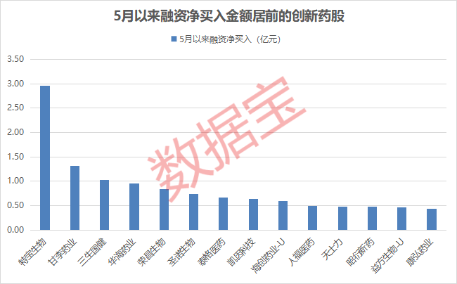 资金面上,创新药板块本月以来获得融资净买入8.61亿元,42只创新药概念股获得杠杆资金加仓,特宝生物、甘李药业、三生国健净买入金额居前,分别达到2.96亿元、1.31亿元、1.02亿元。