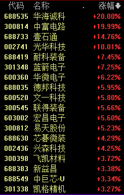 今天上午,先进封装板块表现强势,华海诚科、壹石通、中富电路等个股涨幅居前。