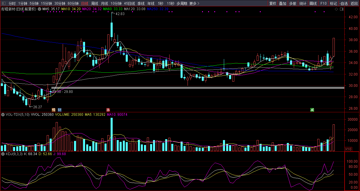 3)技术面看点:k线组合构筑发射架,放量站稳20日线;