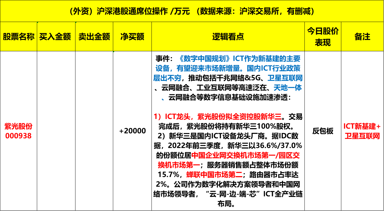 2)外资榜