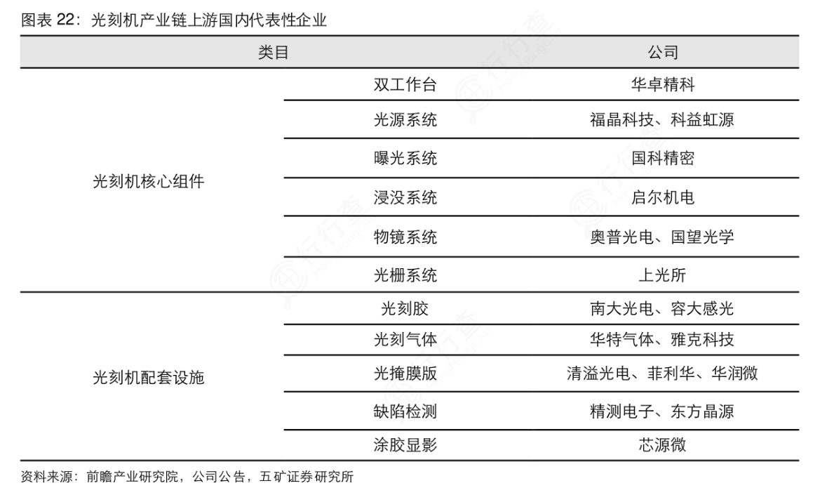 2)给国产光刻机供货的厂商: