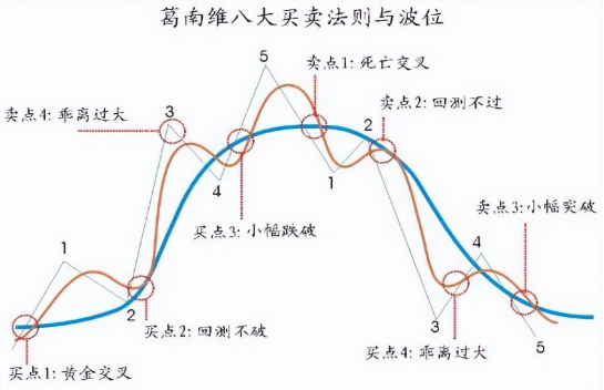 葛兰碧八大买卖法则:由美国投资专家葛兰碧(又称格兰碧、格兰维尔,是第一个提出量价关系的美国投资专家。),利用股价在移动平均线中的变化,创造的八项法则(也称八大定律)。